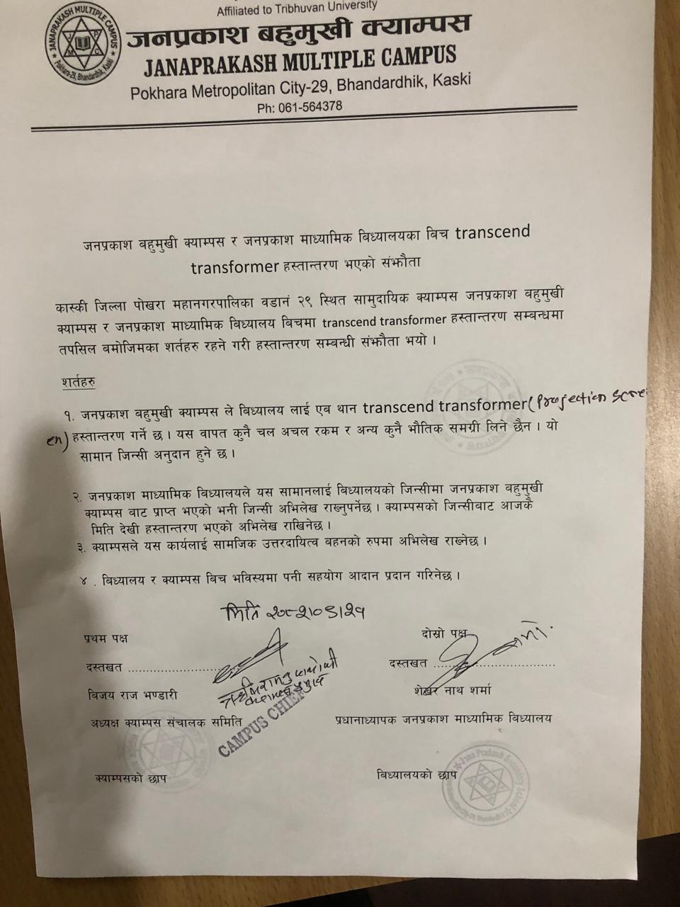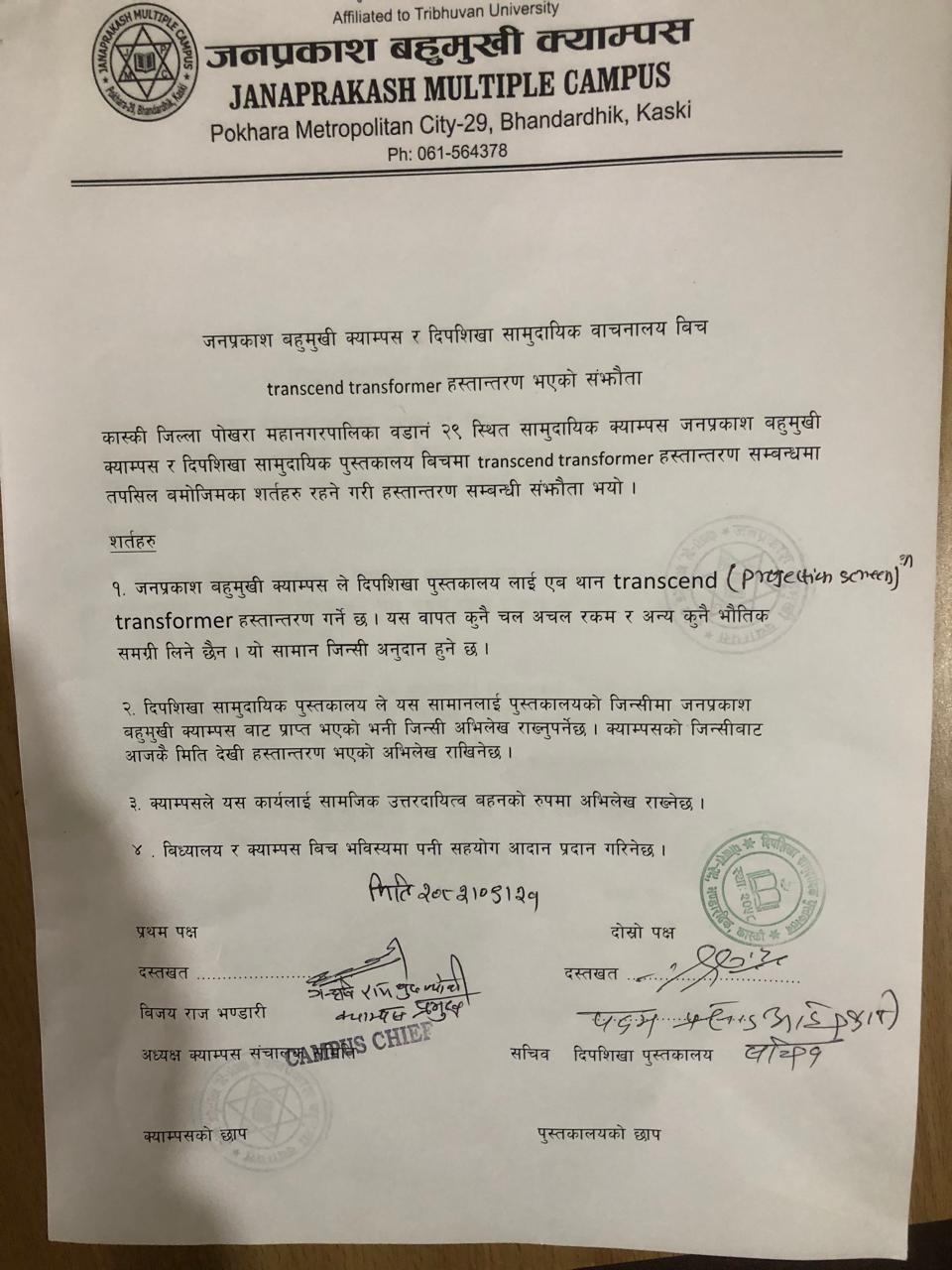योजना निर्देशनालयबाट सामुदायिक क्याम्पसको प्रमाणपत्र प्राप्त ।