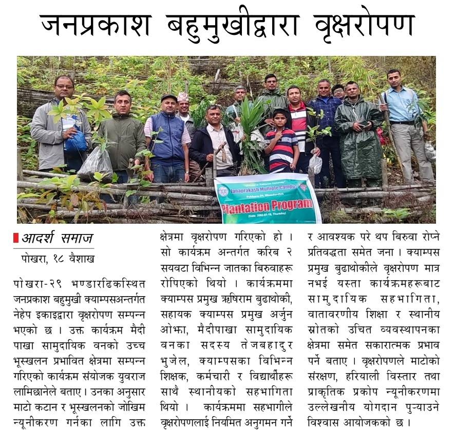 जनप्रकाश बहुमुखी क्याम्पसद्धारा वृक्षारोपण कार्यक्रमका केहि झलकहरु-2082