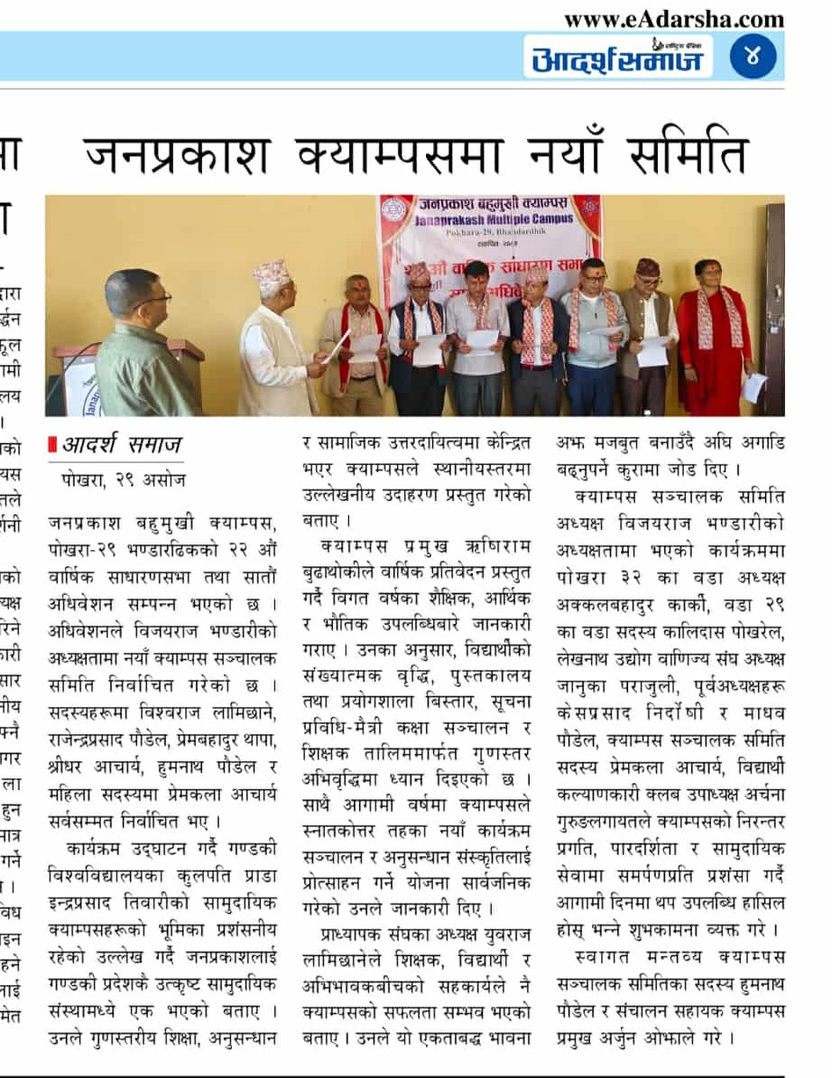 जनप्रकाश बहुमुखि क्याम्पसको २१ औ साधारण सभा तथा ७ औ अधिबेशन का कहि झलक हरु